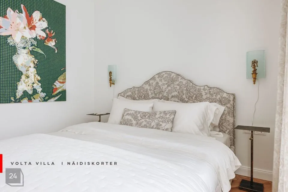 Peamagamistuba jääb korteri teise tiiba, mis muudab selle vaikseks ja privaatseks. Magamistuba ilmestavad kaunid kaaraknad ning autentsed seinanišid.