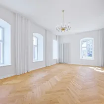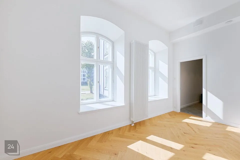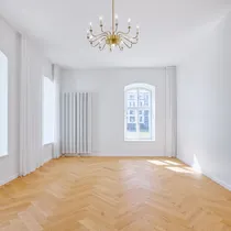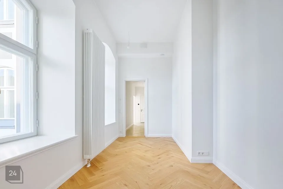 Korteri siseviimistlus on ajatult elegantne – korteris katab põrandaid klassikaline kalasabamustris tammeparkett, korteril on kõrged massiivpuidust profiiluksed, messingust aknalingid ning säilitatud hoone autentsed arhitektuursed detailid.