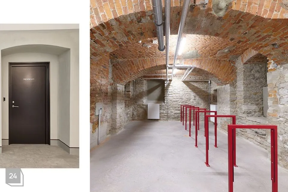 / Hoones sees kaks ruumikat jalgratta-vankriruumi ning panipaik igale korterile