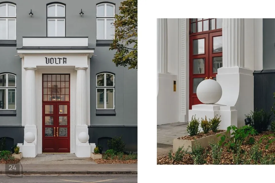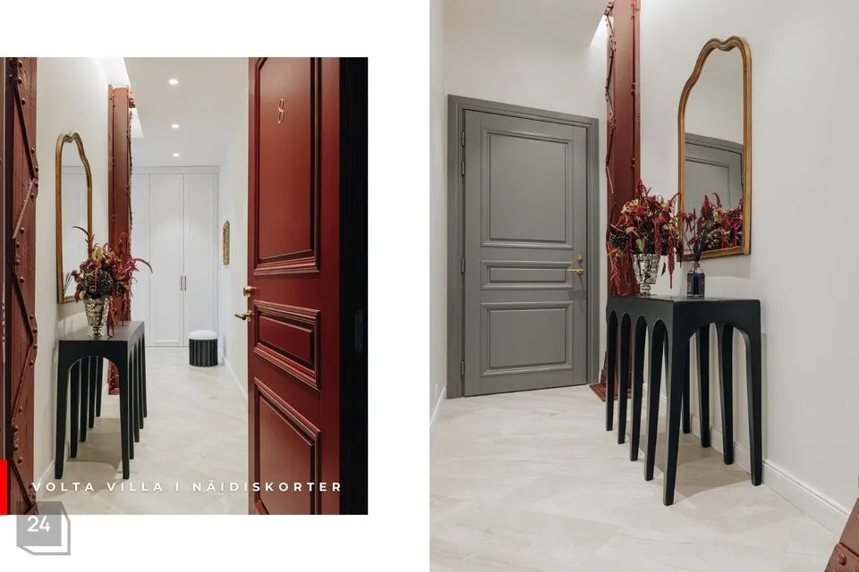 Volta Villas võtab Sind iga päev vastu suurejooneline sissepääs. Koduni juhatavad kaks väärikat peatreppi võluvate disainlühtritega ning veinipunased korterite uksed messingust detailidega.