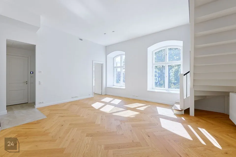 Korteri siseviimistlus on ajatult elegantne – korteris katab põrandaid klassikaline kalasabamustris tammeparkett, korteril on kõrged massiivpuidust profiiluksed, messingust aknalingid ning säilitatud hoone autentsed arhitektuursed detailid.