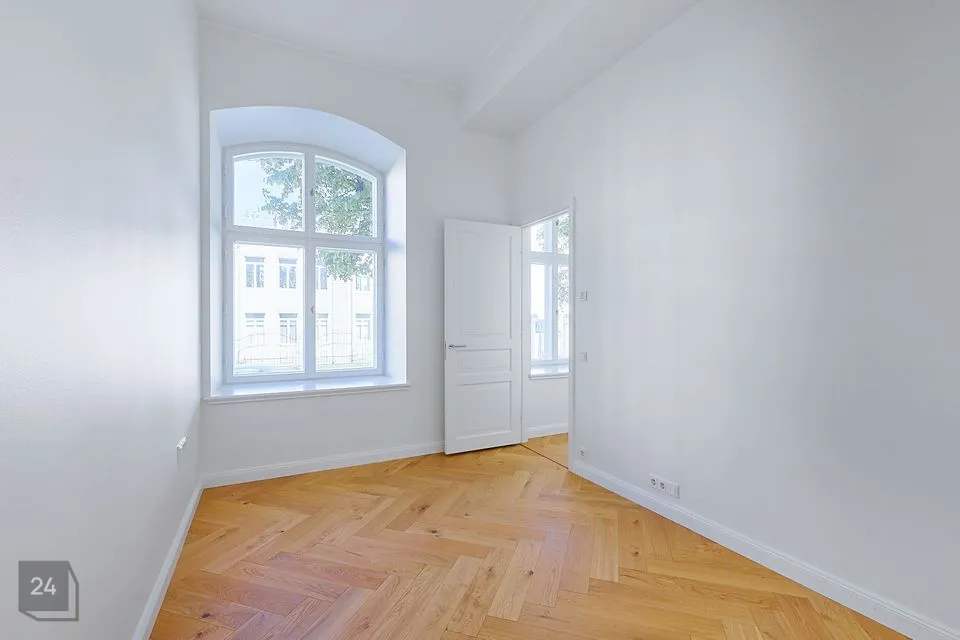 Отделка этой квартиры выполнена в стиле вневременной элегантности. Полы украшает классический дубовый паркет, выложенный узором «ёлочка», изысканные профильные двери изготовлены из массивного дерева, оконные ручки выполнены из латуни, а аутентичные архитектурные детали здания бережно сохранены, придавая пространству характер, глубину и уникальность.