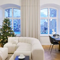 Volta Villas võtab Sind iga päev vastu suurejooneline sissepääs. Koduni juhatavad kaks väärikat peatreppi võluvate disainlühtritega ning veinipunased korterite uksed messingust detailidega.