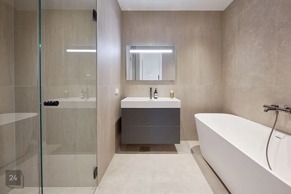 Selle kodu juurde kuuluvad kõik moodsad mugavused – korteris on jahutussüsteem nii elutoas kui ka suuremas magamistoas. Kodukeskkonda saad juhtida targa kodu süsteemi abil. Kõikides tubades katab põrandaid elegantne kalasabamustris tammeparkett. Pesuruumides ilutsevad suureformaadilised keraamilised plaadid ning eksklusiivsed eriviimistluses AXORi segistid. Elegantsi ja rafineeritust lisab mattvalge kivivann, mis toob esile luksusliku ja ajatult stiilse sisekujunduse. Kõik vannitoad on juba sisustatud, mis muudab uue kodu kolimise veelgi mugavamaks.