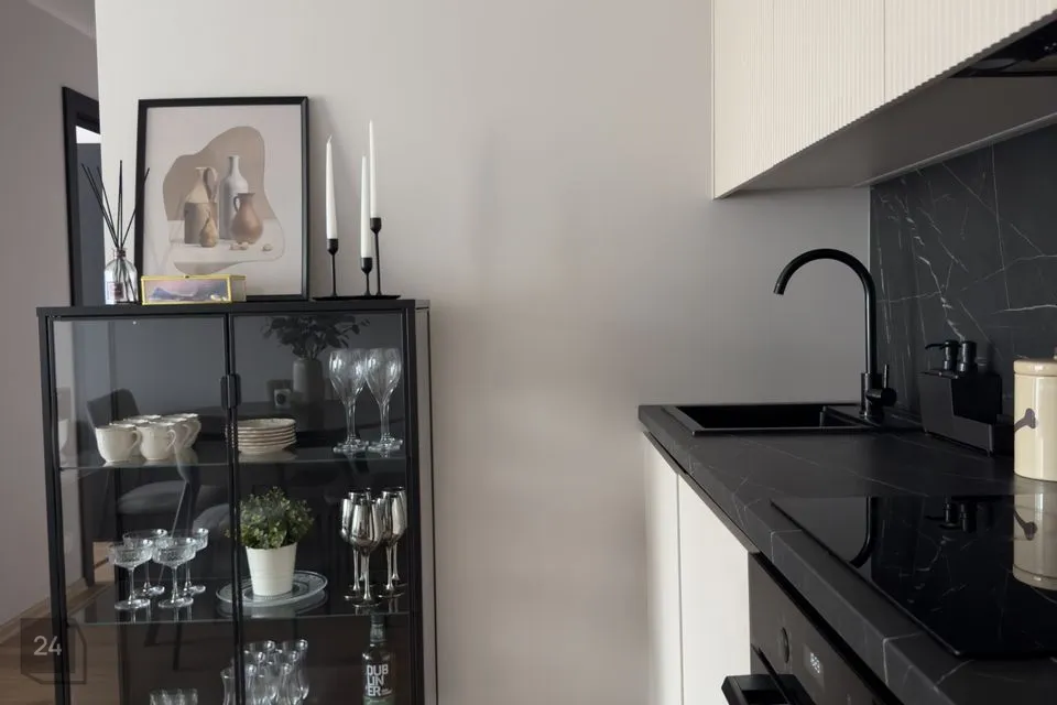 The apartment is sold together with furniture and built-in appliances (refrigerator, dishwasher, oven, stovetop, air extractor, washing machine). Possible to move in immediately – no additional investments needed.