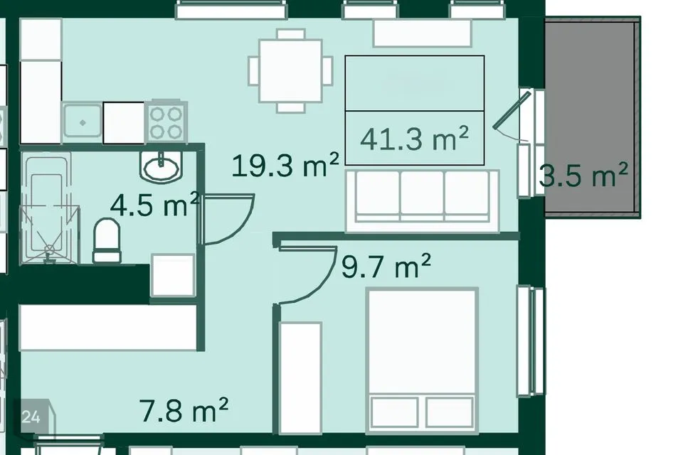 Avatud köögi ja elutoaga. Korteri juurde kuulub 3,5 m² rõdu, kust avaneb vaade maja taha mänguväljakule.