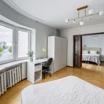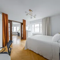 Korteri planeering on eriti sobiv eraldi ruume aga ka avarust hindavale inimesele, nii eraisikule kui ka investorile, kes sooviks korterit tubade kaupa rentida. Kõik toad on eraldi ja võimalik lausa võtmega sulgeda, aga samas tänu kahe toa vahelisele suurele lükanduksele saab neid kahte tuba koos kasutada hiiglasliku ja muljetavaldava kaaraknaga salong-elutoana. Korteris on ka meeldiv esik, kus hetkel küll klaver aga kuhu lihtsalt mahub ka suur välisriiete kapp. Vannituba ja WC on mugavalt eraldi.