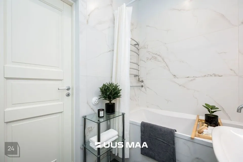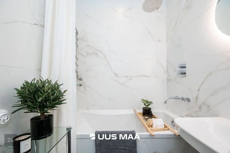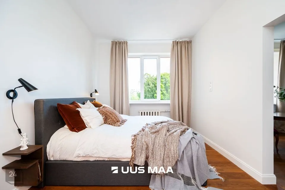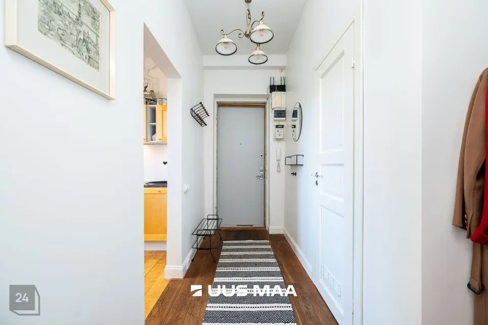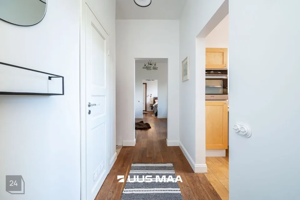 Korter paikneb maja neljandal korrusel ning on suunaga hoovi poole. Enda tulevasse koju sisenedes jõuate kõigepealt esikualasse, kuhu saate paigutada üleriided ja jalanõud. Esikust paremal käel paikneb eraldi asetsev köök koos kogu vajaliku tehnikaga sh nõudepesumasinaga. Esikust vasakul käel asub värskelt renoveeritud vannituba, mis on maitsekalt viimistletud. Koridorist edasi liikudes jõuate avarasse elutuppa. Selle korteri märksõnaks on kindlasti kõrged laed, mis lisavad kogu elupinnale avarust. Elutoast edasi liikudes jõuate magamistuppa, mille ühe seina katab mahukas sisseehitatud garderoob. Magamistuba on mõnusalt ruumikas.
