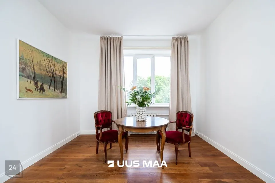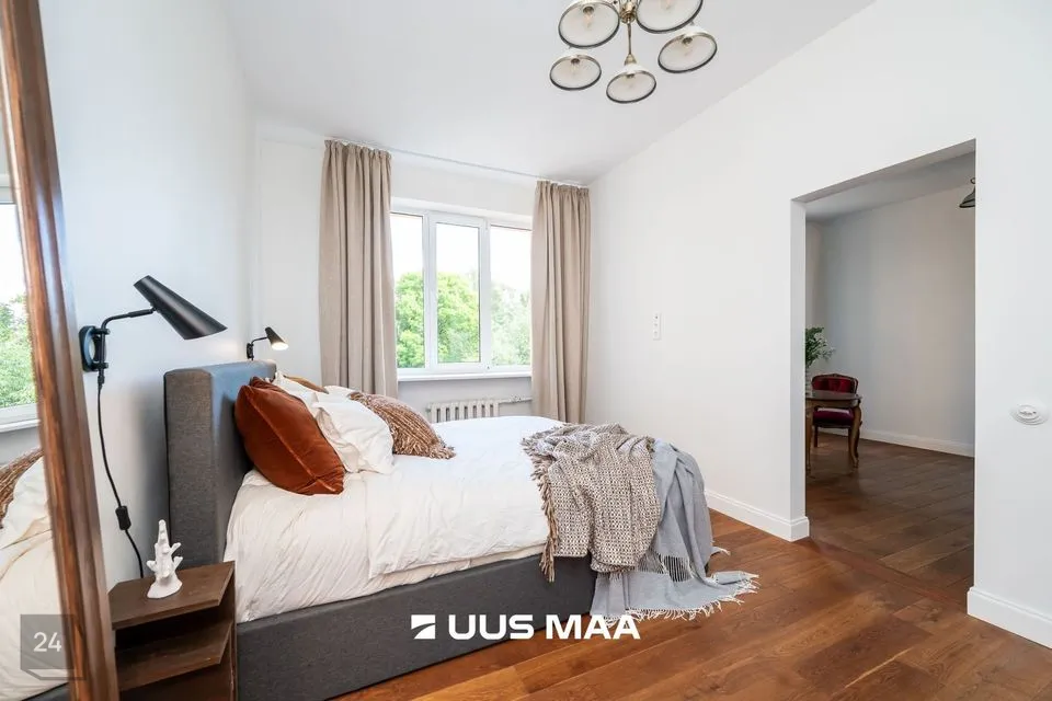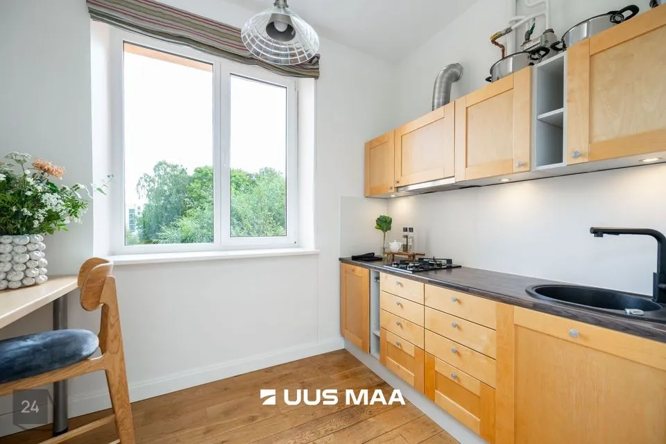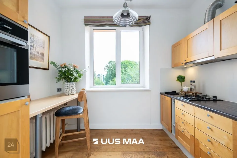 Korterisse paistab ennelõunane päike. Suvisel ajal saate murevabalt ka aknaid lahti hoida, ilma et peaks muretsema liiklusmüra ja tolmu pärast. Müüdava kodu renoveerimisel on kasutatud materjale ja sisustuselemente, mis sobivad kokku selle ajastu majadega.