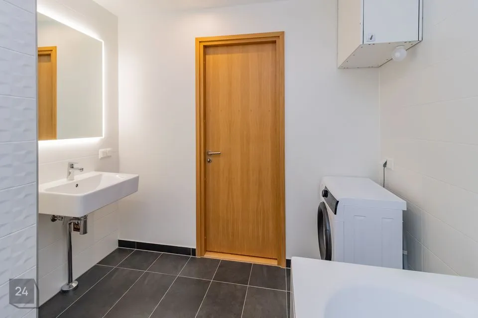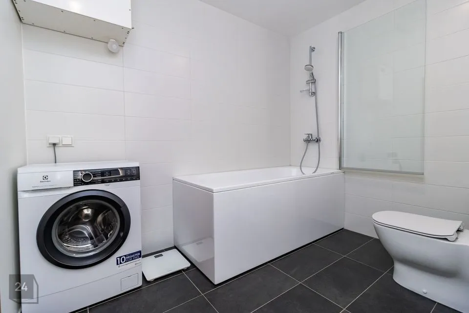- Ванная комната (5,9 м²): ванна, душ и электрический подогрев пола