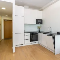 - Гостиная с кухней (21,8 м²): открытая планировка, качественная кухонная мебель (Idema) и вся необходимая техника (посудомоечная машина, холодильник, индукционная плита и пр.)