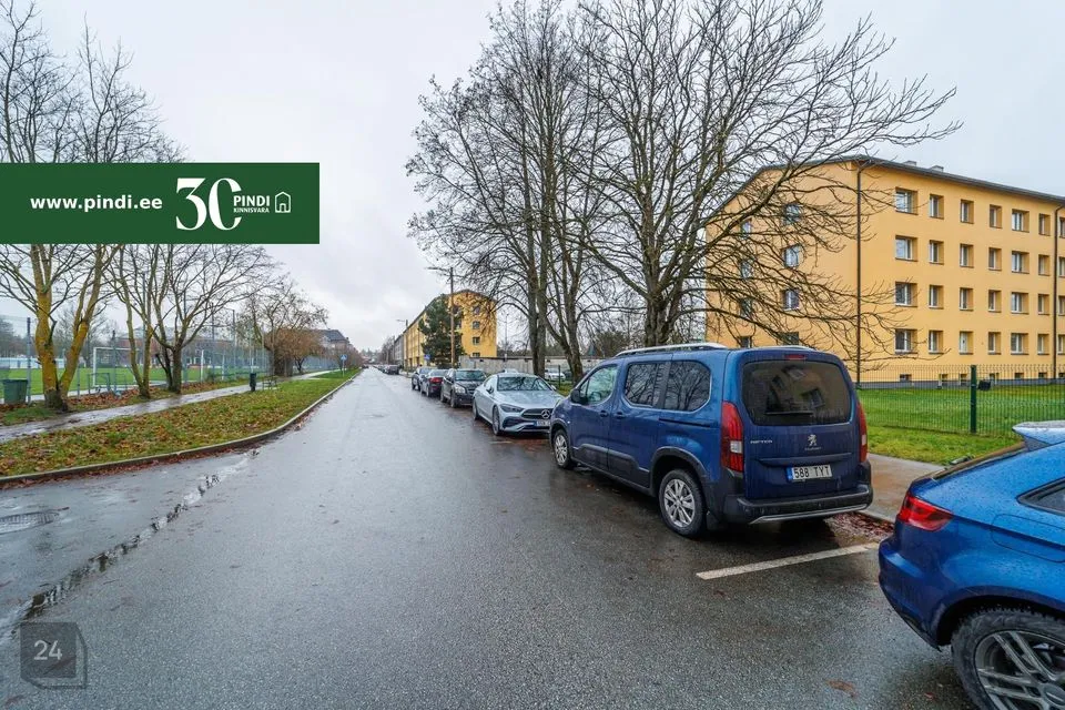 Vaba parkimine kortermaja ees olevas parkimiskohtades. Kommunaal ared suvel ca 100.- eurot, talvel 170.- eurot