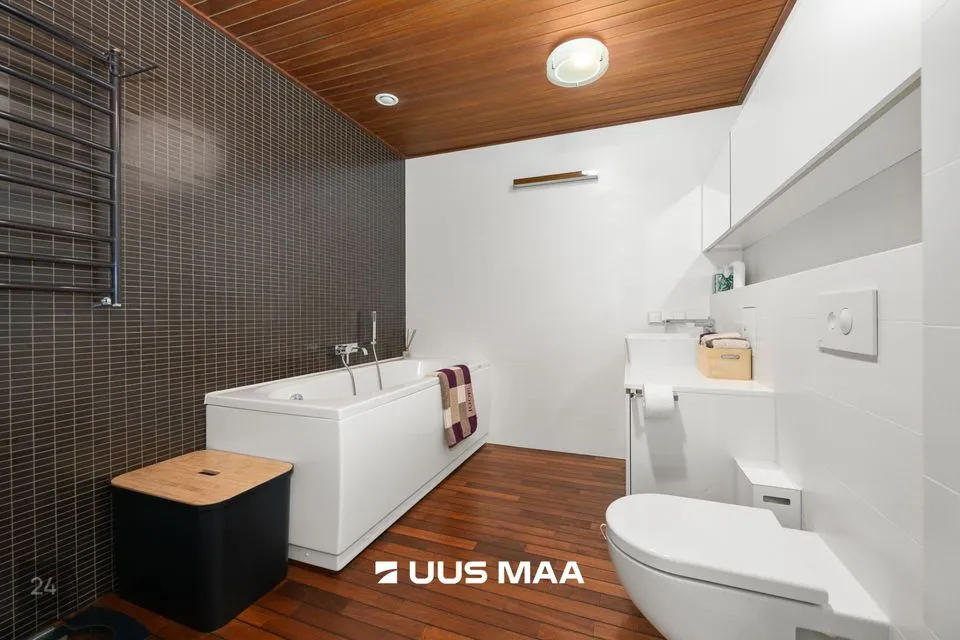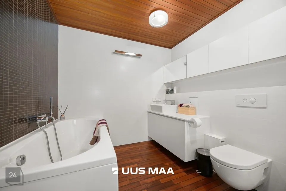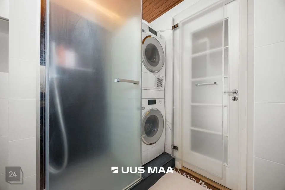 Pesuruumis on võimalik nautida nii duši all käiku kui ka head lõõgastavat vanni. Pesumasin ja kuivati on kapi sisse peidetud, mis jätab visuaalselt puhtama mulje.