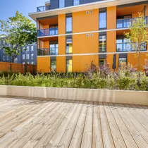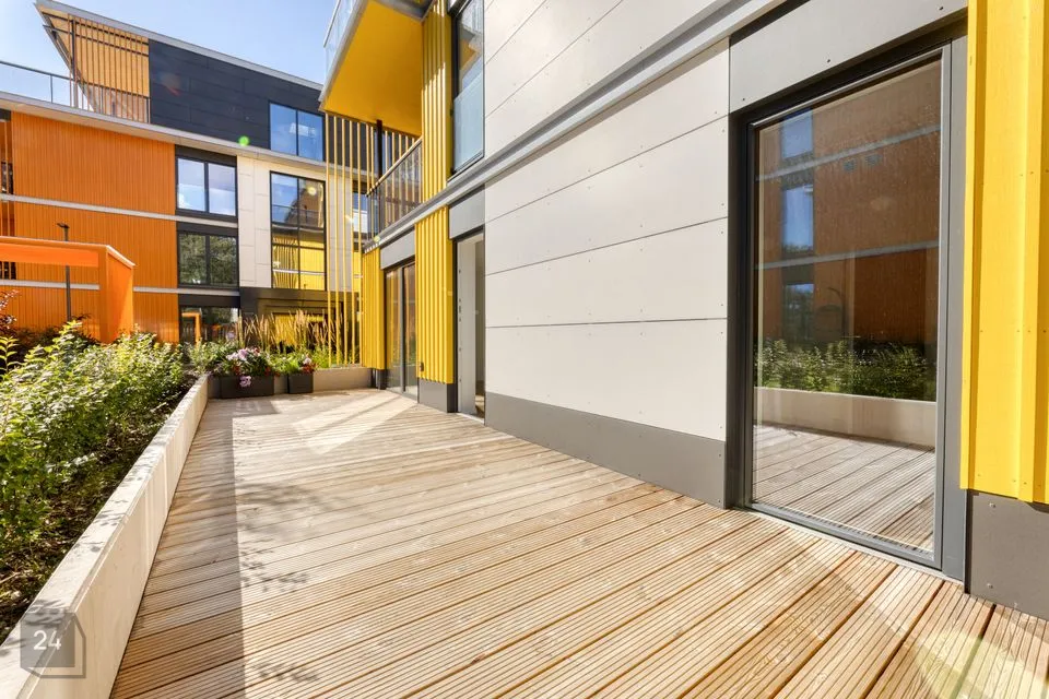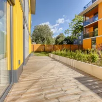 Esimese korruse korterid, mille krooniks on terrassid, on paljude inimeste jaoks justkui täide läinud unistus. See on nutikas eluruumi laiendus, kus nautida hommikukohvi, pidada õhtusööke sõpradega või lihtsalt värskes õhus puhata. Seda kõike hetkekski oma armsast kodust lahkumata. Suured maast laeni aknad täidavad korteri loomuliku valgusega ning avar planeering tagab mugava ja funktsionaalse ruumikasutuse.
