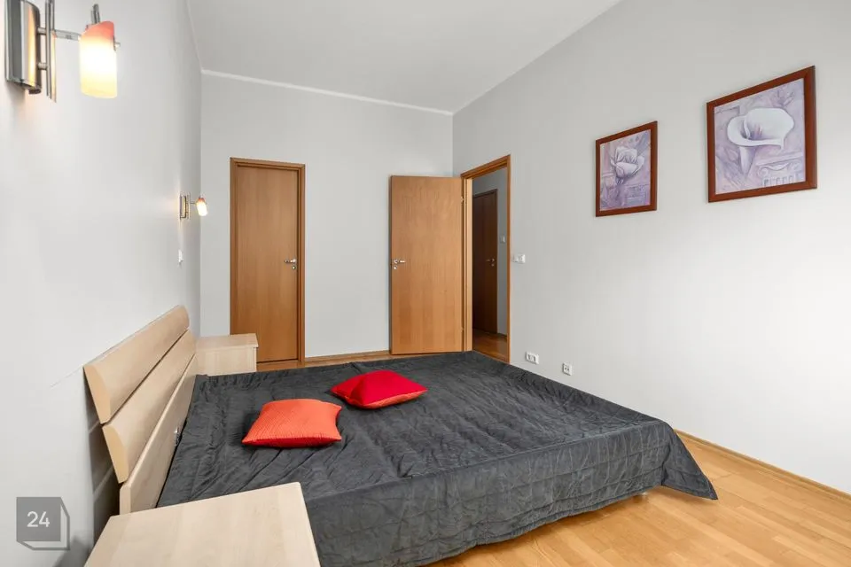 Tavapärasest suurem 2-toaline korter on meeldivalt avar ja asub hoone kuuendal korrusel, vaadetega Tatari tänava suunal. Elamises on küllaldaselt hoiustamise ruumi. Esikus on lükandustega garderoobi kapp ning magamistoast pääseb mahukasse walk-in garderoobi. Köök ja elutuba on avatud planeeringuga ning ruumi poolest piisavalt suur mahutamaks kodukontor või suurem söögilaud.