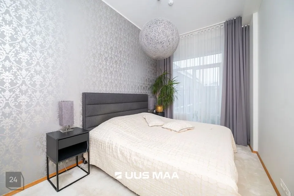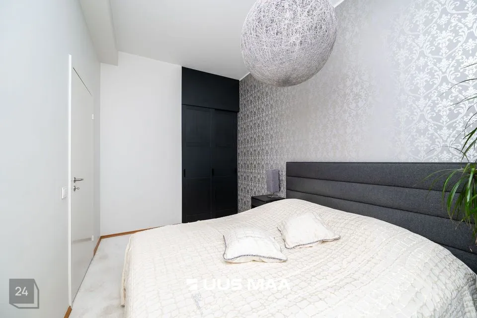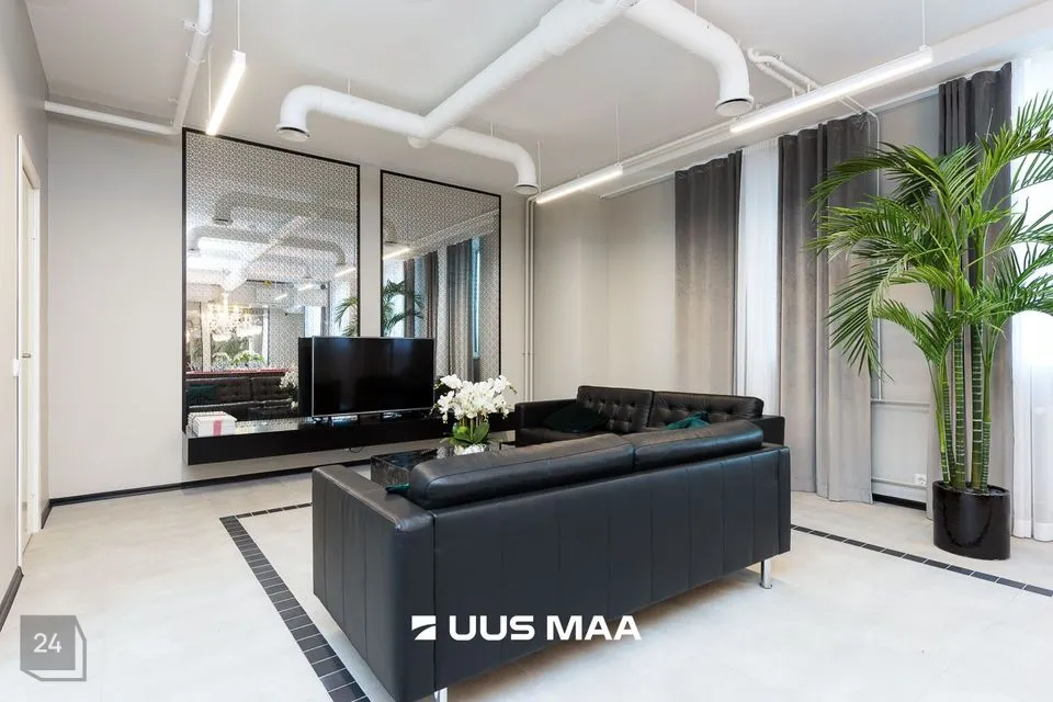 Korteris on suured aknad ning lagede kõrgus on 3,15 m. Köetav pind 57,5 m². Väga hea planeering: elutuba avatud köögiga, magamistuba, kabinet-magamistuba, duširuum koos tualetiga ning avar esik.