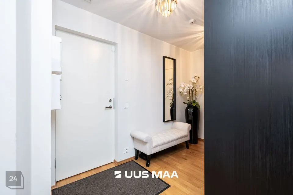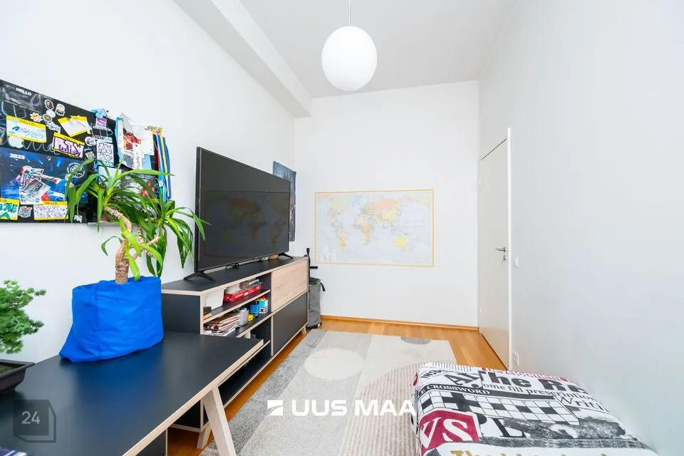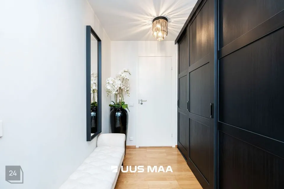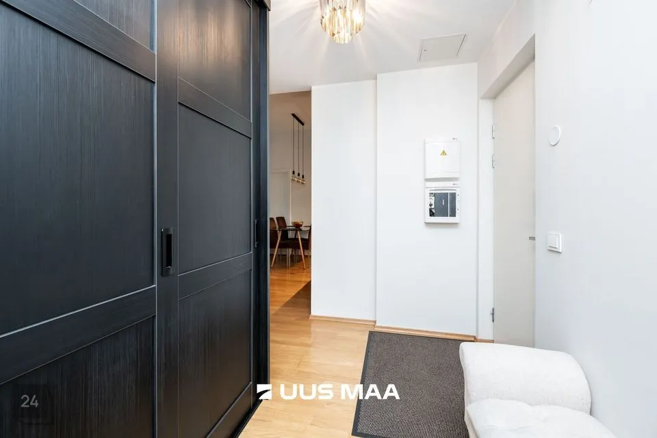 Põrandad elutoas, mõlemas magamistoas ja esikus on kaetud tammeparketiga. Vannitoa põrand on varustatud põrandaküttega. Köök on varustatud kvaliteetse köögimööbli ja tehnikaga (ahi, induktsioonpliit, õhupuhasti, nõudepesumasin, külmik sügavkülmikuga). Korter on väga soe, vaikne, hubane ja valgusküllane.