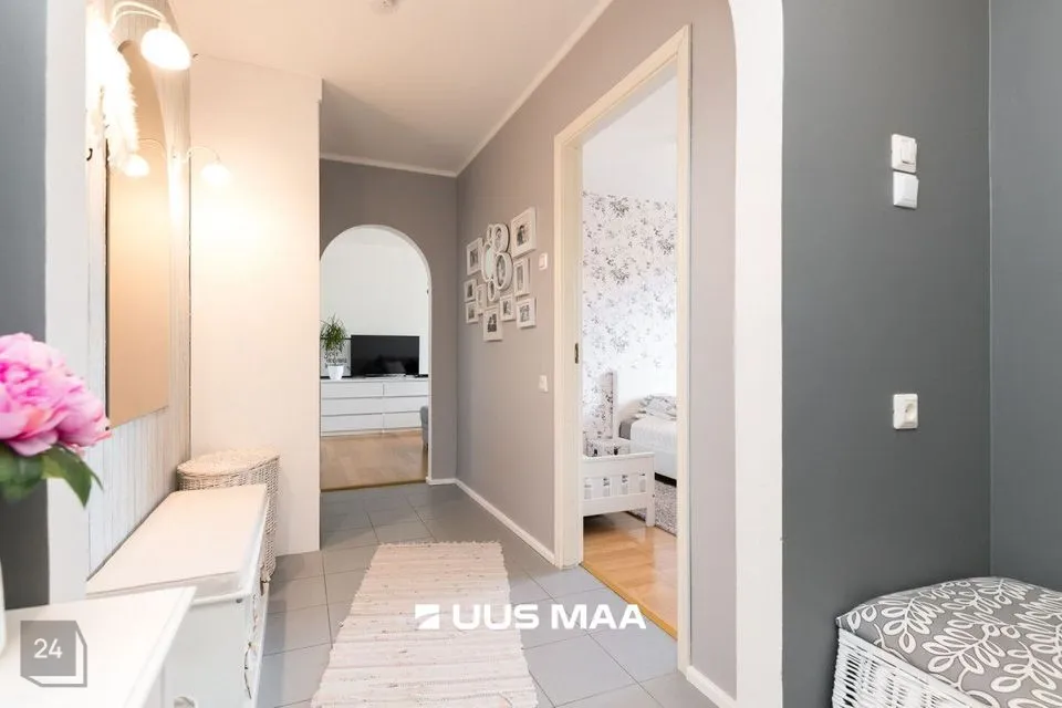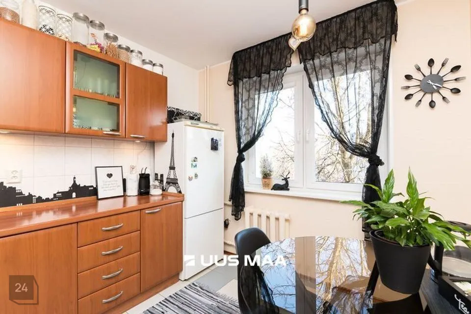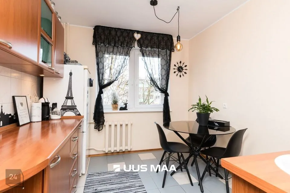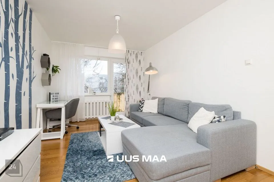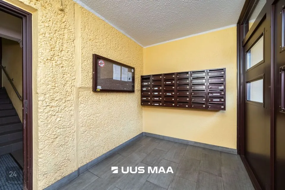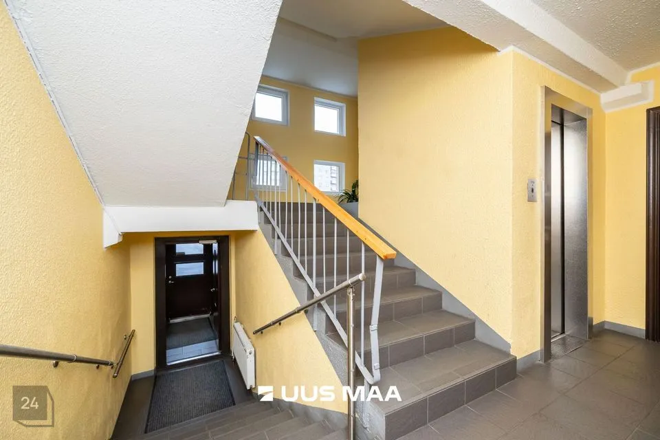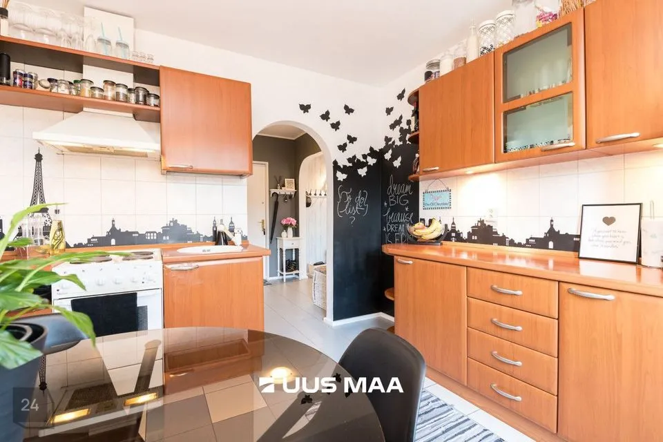 Korteri plaan: elutuba pääsuga rõdule, magamistuba, köök, vannituba wc-ga, esik. Tubades katab põrandat naturaalne parkett, köögis ja vannitoas on võimalik kasutada elektrilist põrandakütet. Korteri aknad on vahetatud 2x pvc akende vastu.