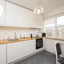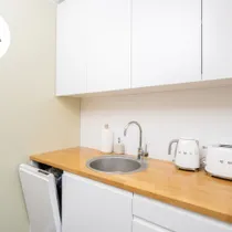köök on kaasaegselt sisustatud ning loomulikult ei puudu sealt nõudepesumasin, köök, kus on piisavalt ruumi nii kokkamiseks, kui ühiselt perega laua ümber õhtustamiseks;
