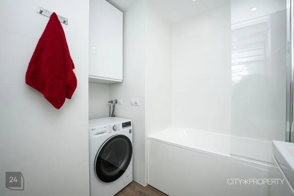 Köök on varustatud kõikide kaasaegsete seadmetega: külmkapp, nõudepesumasin, mikrolaineahi, induktsioonpliit koos ahjuga ning Aquaphor veefilter. Vannitoas on kivivann koos dušiga, pesumasin ja põrandaküte, mis tagab sooja ruumi ilma, et oleks vaja eraldi küttesüsteemi sisse lülitada.