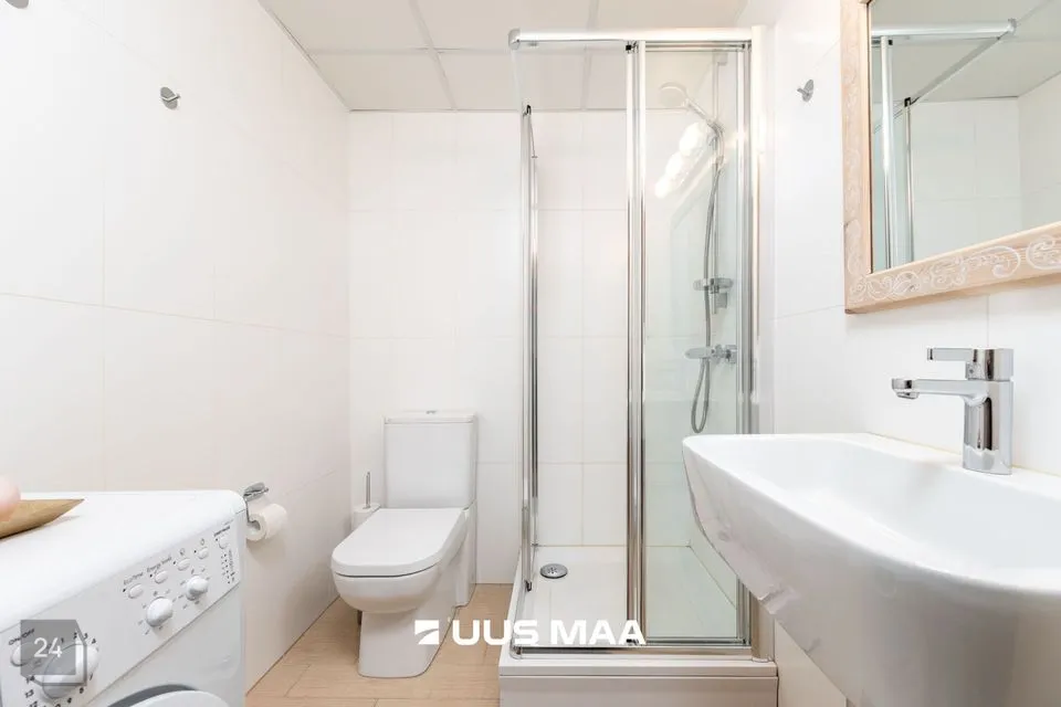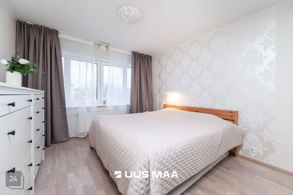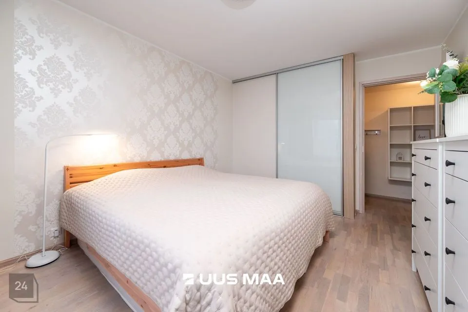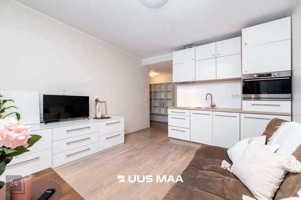 Korter on maitsekalt sisustatud ja heas seisukorras. Korteri koosseisu kuulub avatud elutuba koos köögiga, mis on täielikult varustatud, sh integreeritud tehnika ja nõudepesumasin; magamistuba, milles on suur voodi ning maast laeni lükandustega garderoobikapid, mis pakuvad rohkelt hoiuruumi; vannituba ja WC, mis on viimistletud heleda plaadiga ning varustatud pesumasinaga.