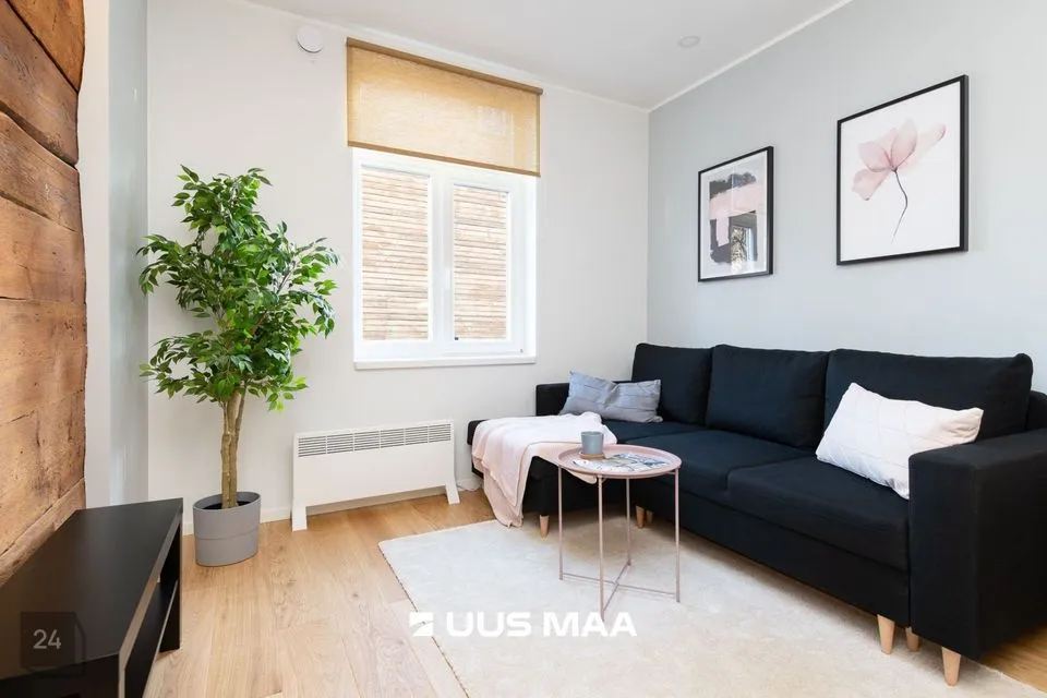 Korter on avatud planeeringuga ning aken avaneb hoone küljele.