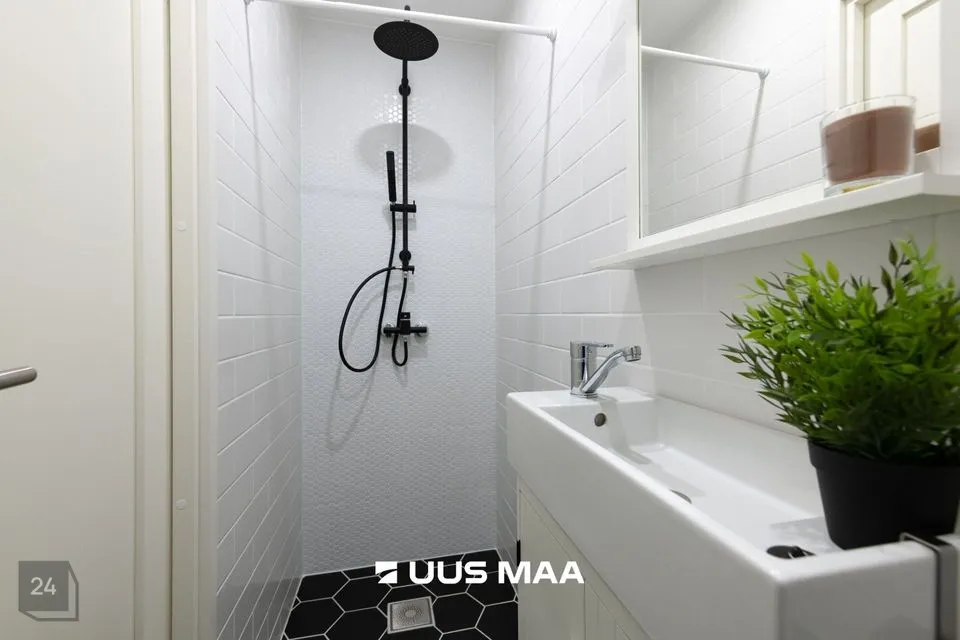Elutoa põrandat katab 1-lipiline naturaalne tammeparkett, vannituba on plaaditud ning plaaditud põranda all on elektriline põrandaküte.