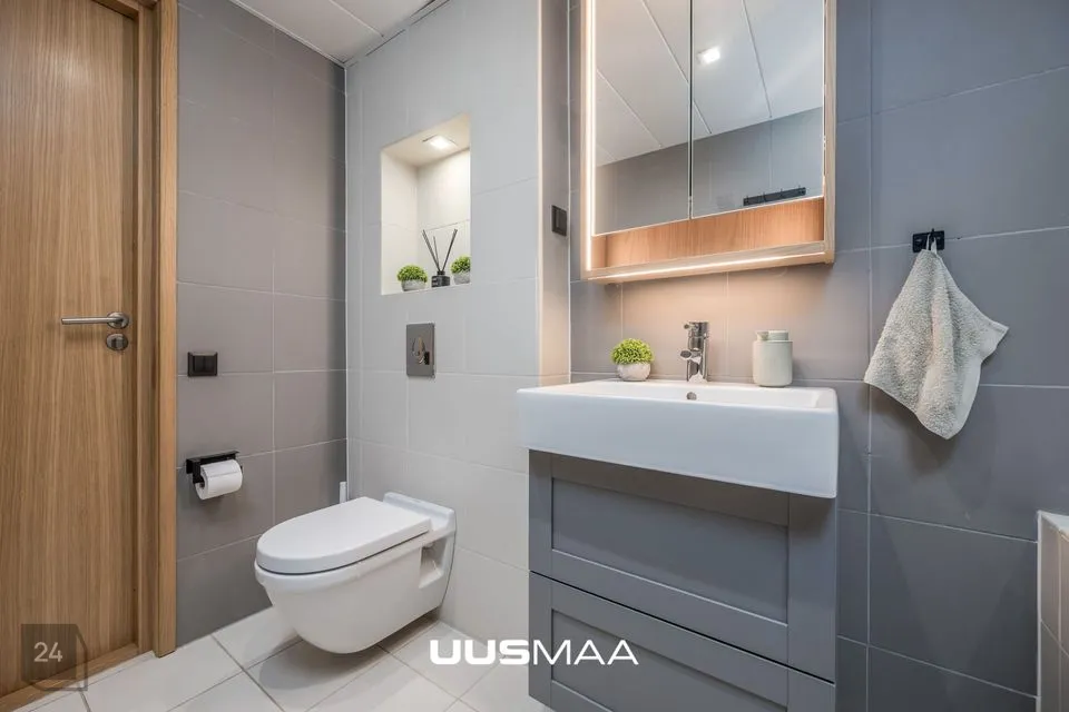 Korter on varustatud sundventilatsiooni ja konditsioneeriga. Konditsioneer töötab automaatselt vastavalt targa kodu seadistusele, kuid seda saab vajadusel ka manuaalselt lülitada. Suvel tagab korteri jahutus värskuse ja maksimaalse mugavuse.