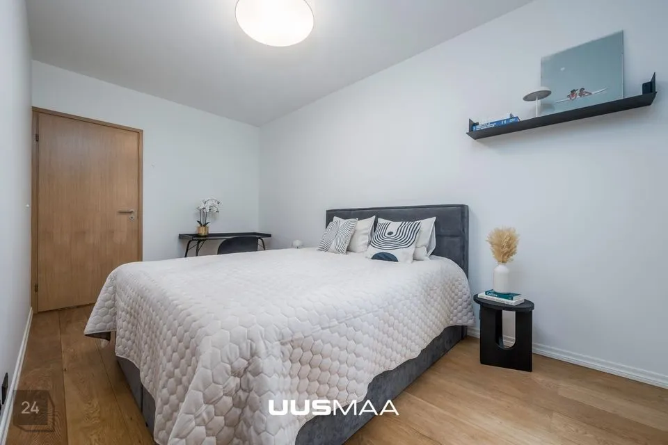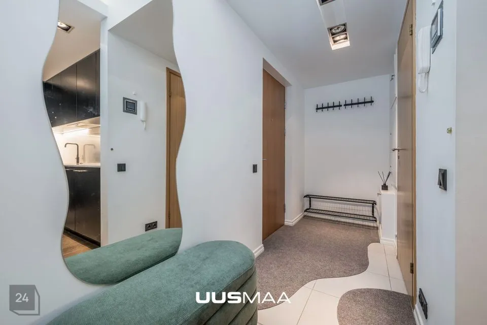 Korteri koosseisu kuuluvad avatud köögiga söögi- ja elutuba, mahuka garderoobiga magamistuba, esik ning vannituba. Köögis on kvaliteetne köögimööbel koos integreeritud tehnikaga (ahi, pliit, kubu, nõudepesumasin, külmkapp) ning köögimööblisse on paigutatud ka pesumasin.
