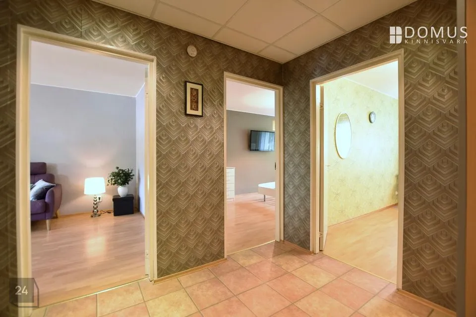 KORTER asub viiekorruselise maja esimesel korrusel. Läbi maja planeeringuga korter on soe ja valgusküllane. Elutoa ja köögi akendest avaneb vaade maja ette ning magamistubade aknad avanevad vaiksesse, rohelisse tagahoovi. Radiaatorid on reguleeritavad ja varustatud mõõdikutega. Rõdude renoveerimise käigus saab ka see korter endale rõdu (4,8m²), kuhu pääseb elutoast. Korteri juurde kuulub keldris asuv panipaik.