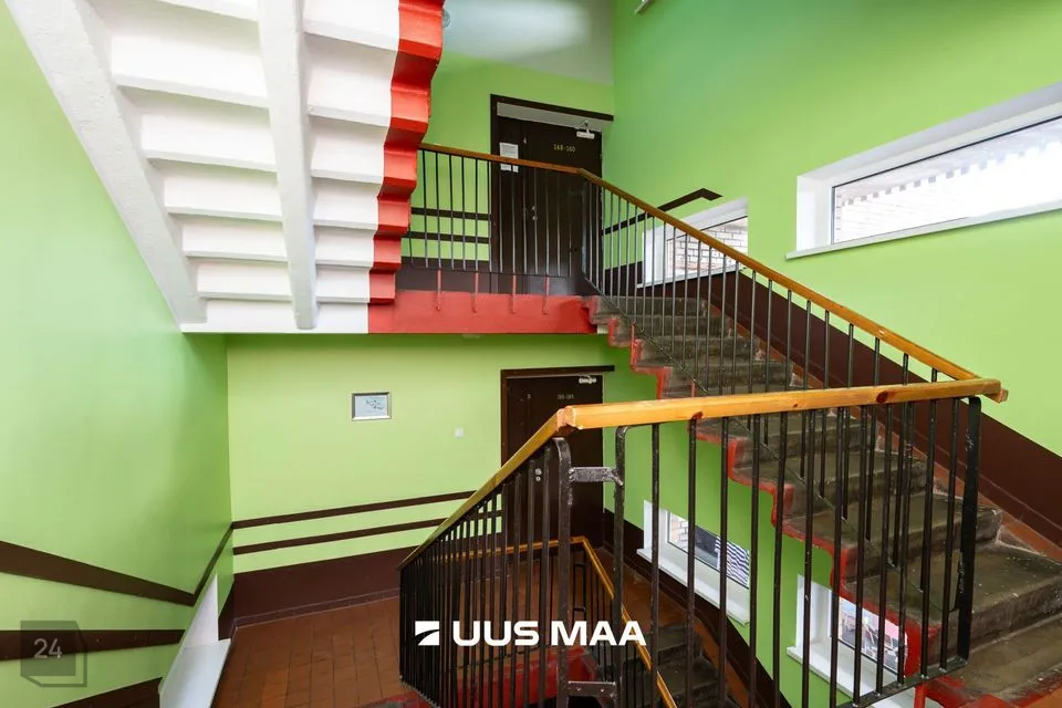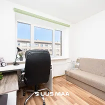 Korter on heledates toonides, põrandaid katab laminaat. Aknast avaneb vaade maja tagumisele küljele.