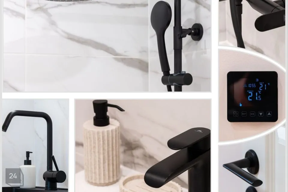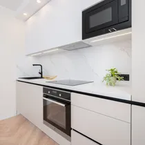 Köögis on kvaliteetne mööbel ja Electrolux tehnikaga sisustus: nõudepesumasin, ahi, õhupuhasti ja integreeritud külmik. Kogu korteri santehnika on uus.