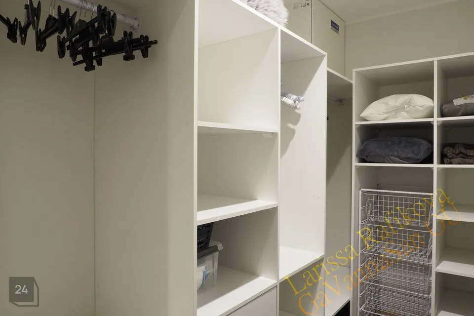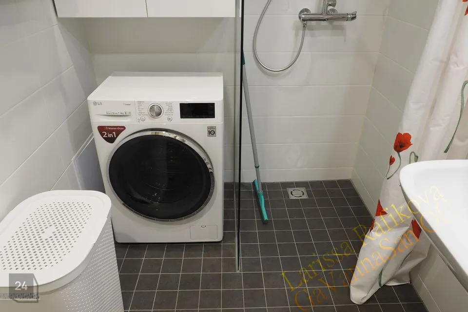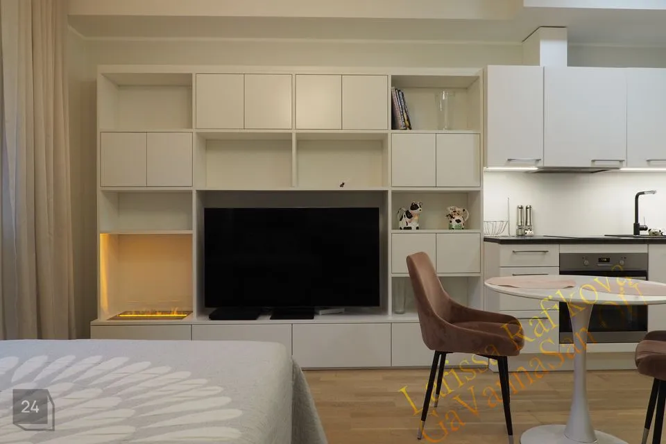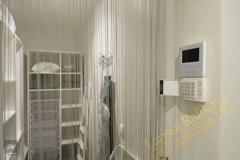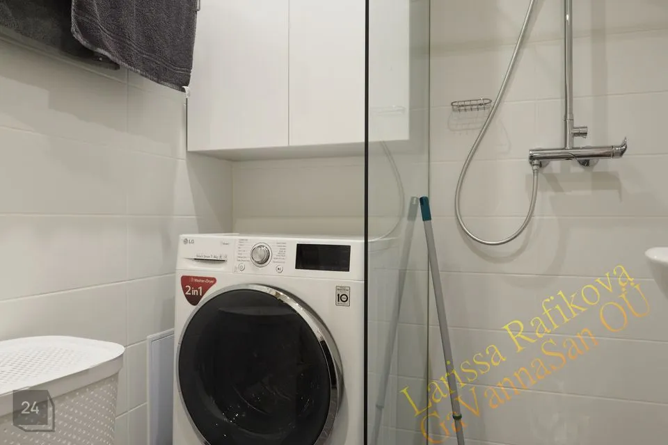 Korteris on walk-in garderoob, duširuum koos tualetiga, sisseehitatud mööbel, kamin, kõik vajalikud kodumasinad ja voodi.