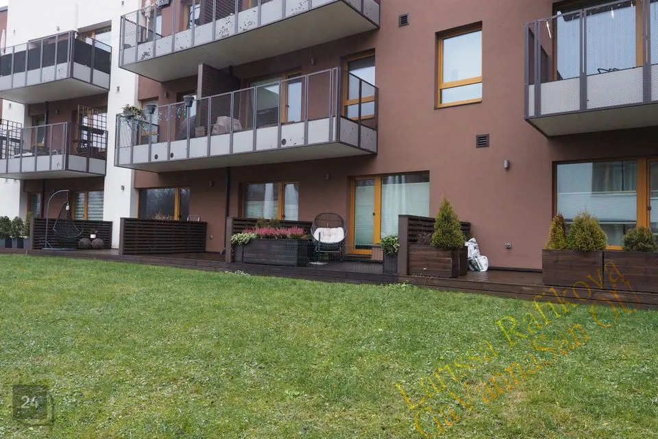 Esimese korruse korteril on juurdepääs oma privaatsele aiaga piiratud terrassile.