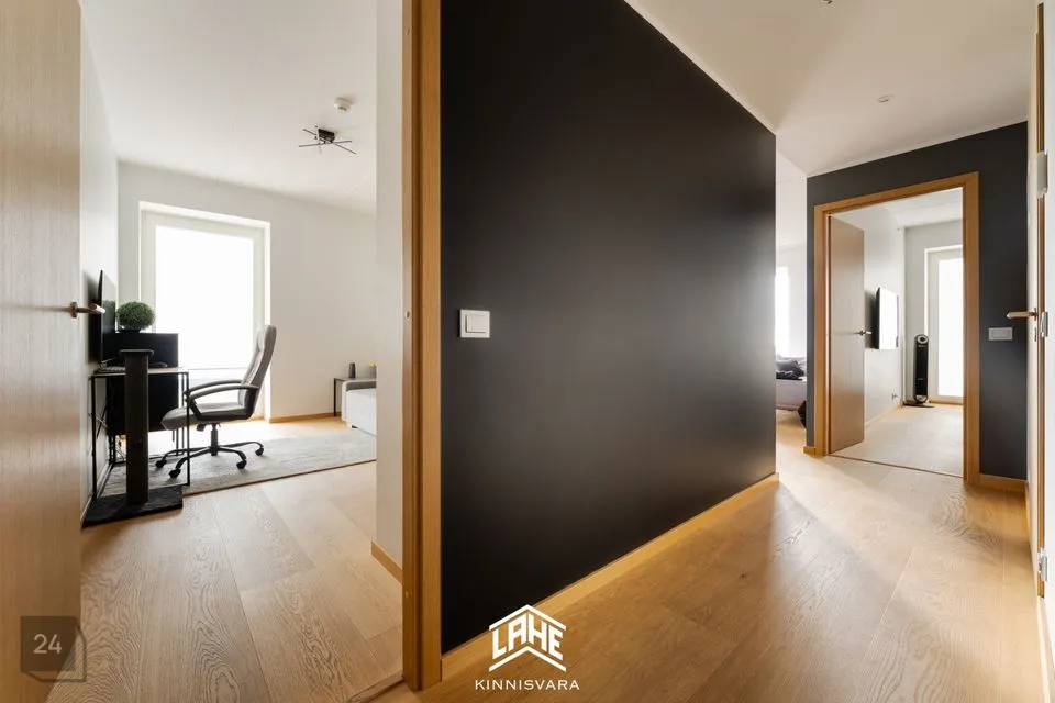 Korteris on avar avatud köögiga elutuba, kaks magamistuba ja vannituba. Hinna sees on maa-alune soe parkimiskoht ning eraldi kõrge laega panipaik.