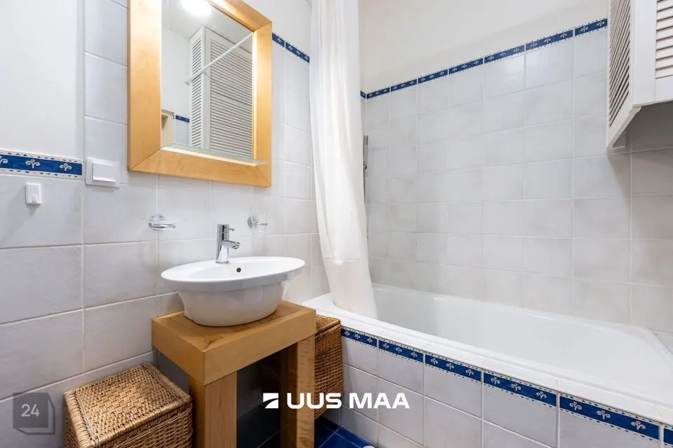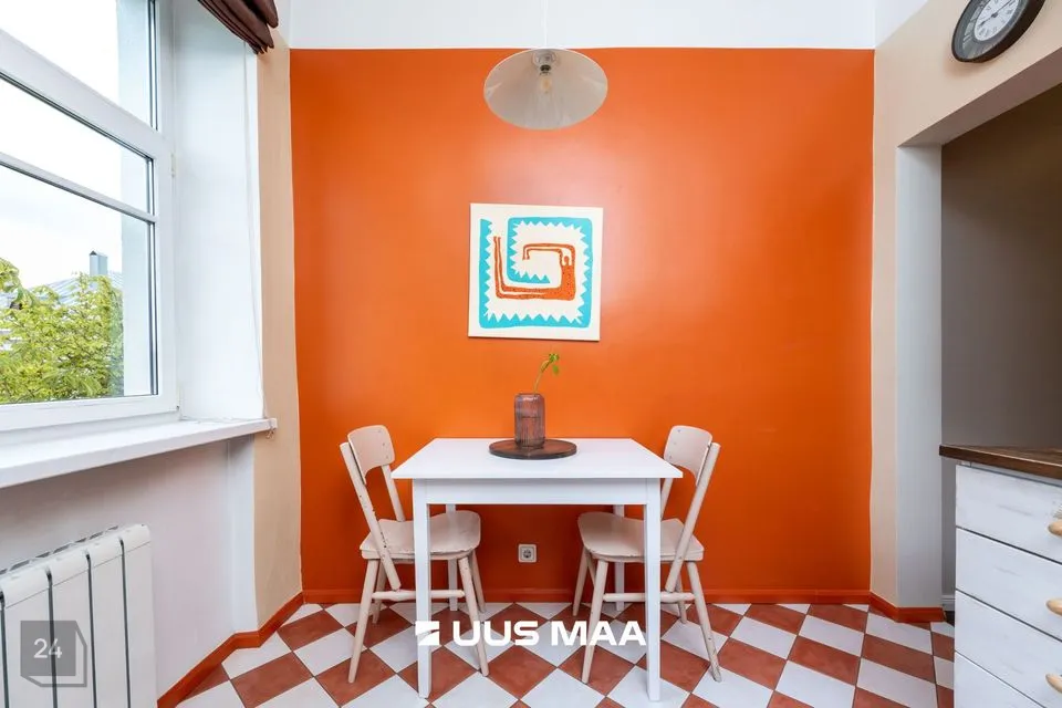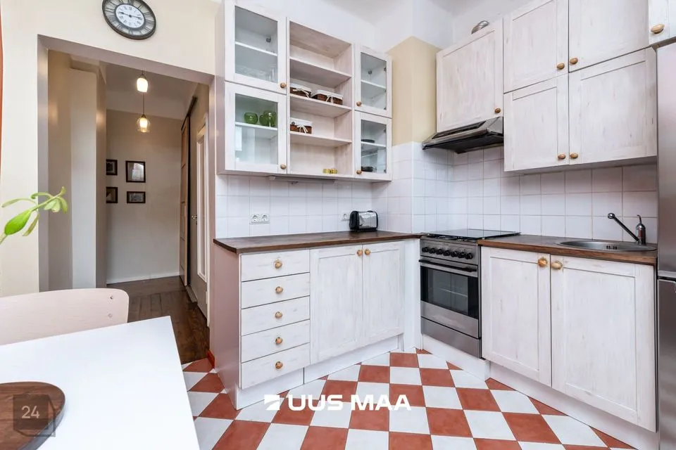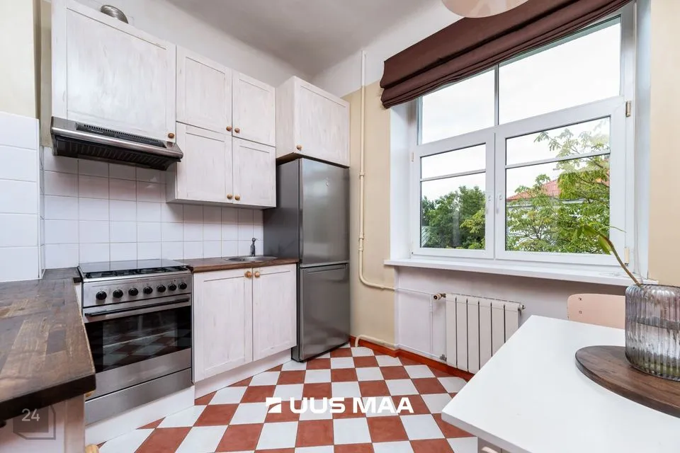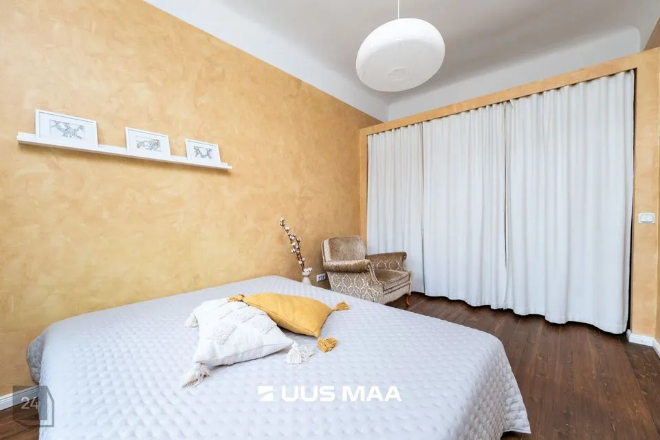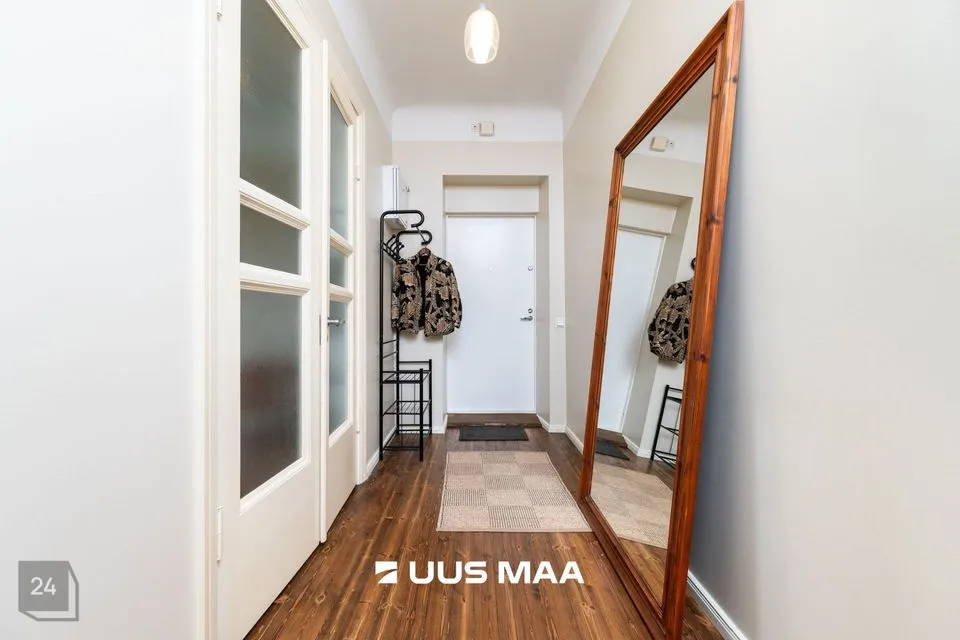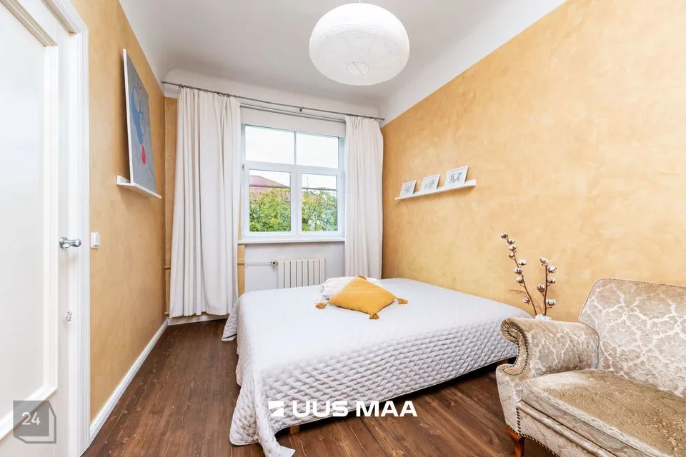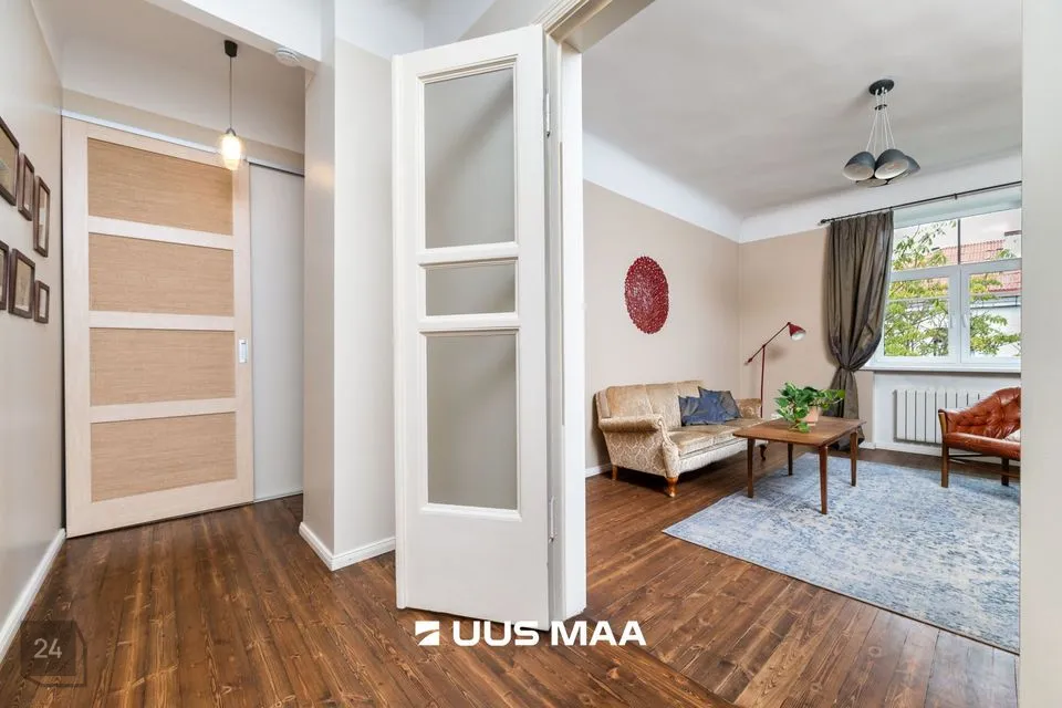 Kõrgete lagedega päikesepoolne 2-toaline korter asub maja viimasel ehk neljandal korrusel. Ruumikas korteris asub elutuba, garderoobkapiga magamistuba, köök, vannituba-wc ja pisike panipaik. Siseuksed on täispuidust, tubades ja esikus taastatud laudpõrandad, köögis ja vannitoas plaaditud põrandad, vannitoas põrandaküte. Korteris keskküte, radiaatorid reguleeritavad.