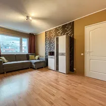 Köögis on mööbel koos tehnikaga (pliit, ahi, külmkapp ). Köögimööbel ja tehnika jääb uuele omanikule. Seinad on peamiselt heledates toonides ja põrandaid katab laminaatparkett. Elutoast olemas suur sisseehitatud riidekapp.