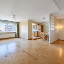 suur ja valgusküllane elutuba, mille põrandal on mõnus kasepuidust laudis;