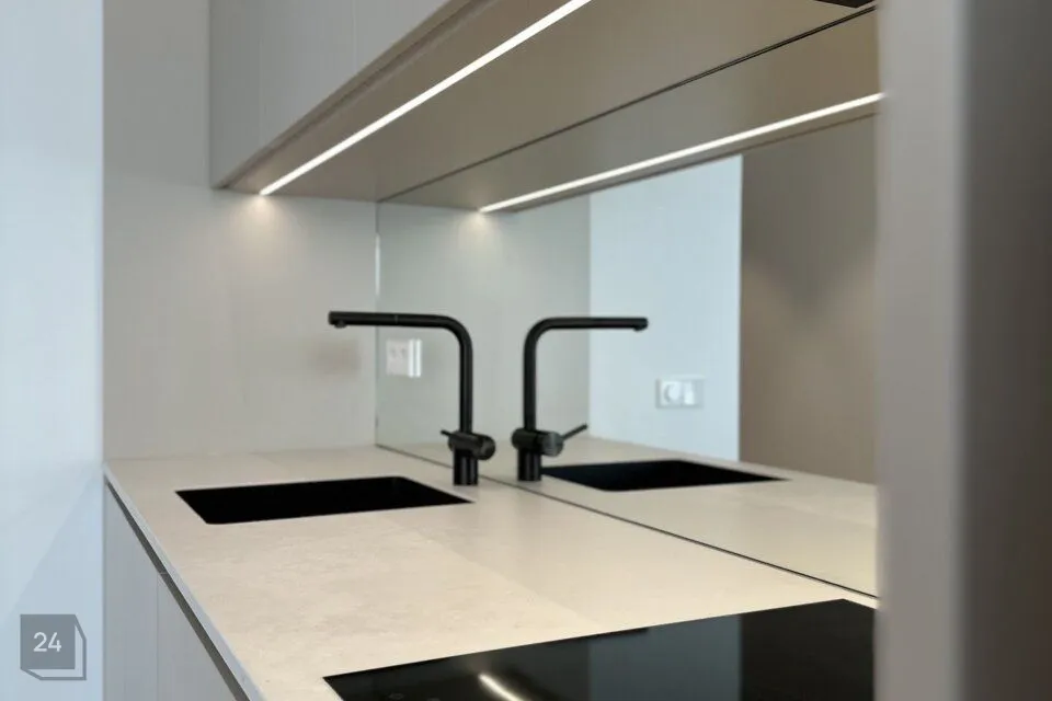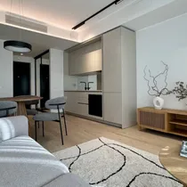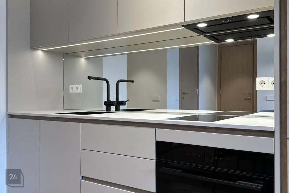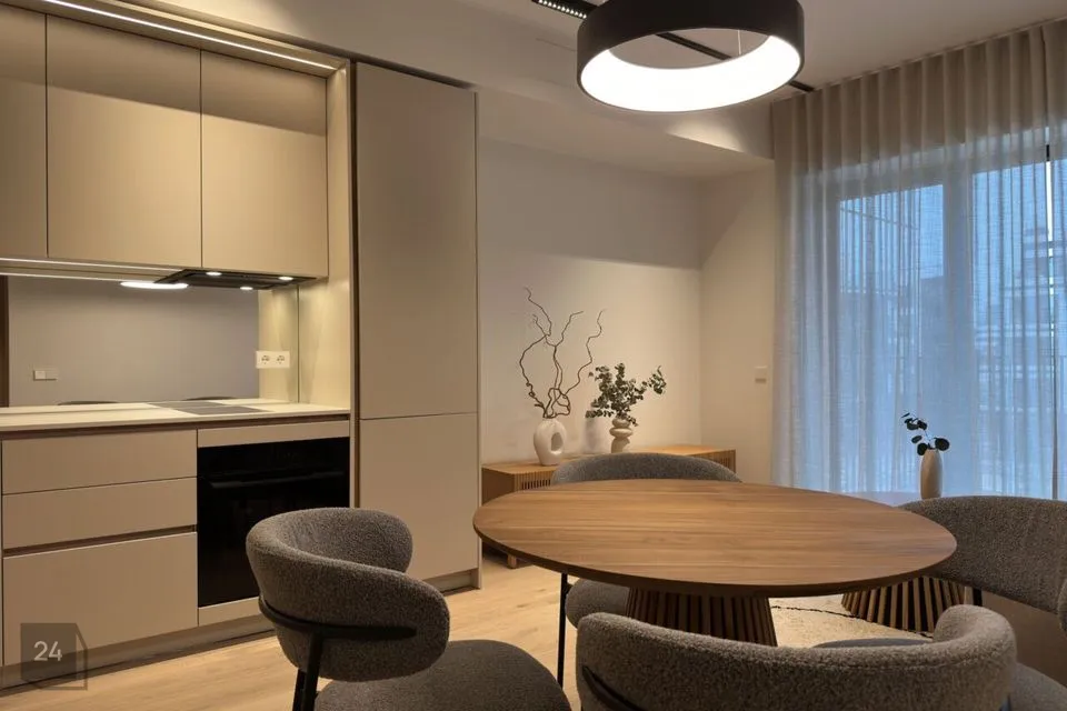 Kvaliteetne mööbel ja uus kasutamata köögitehnika täidab nii väiksemad soovid kui ka asjatundjast toiduvalmistaja nõudmised suurepäraselt. Piisavalt leiab kappe-riiuleid. Kogu tehnika on premium tootjatelt (Elektrolux, AEG, Bosch): nõudepesumasin, ahi, induktsioonpliit, täismõõdus külmik. Laud ja 4 tooli.