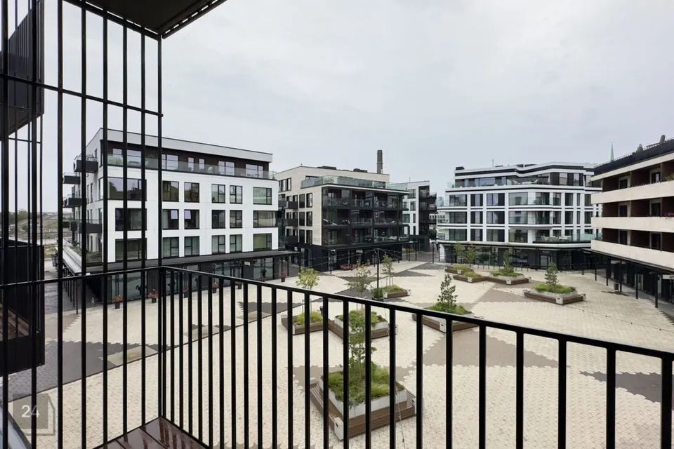 5.2m² avatud rõdult on suurepärane vaade avarale sisehoovile, silmanurgast paistab ka meri.