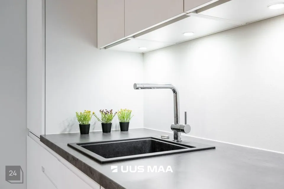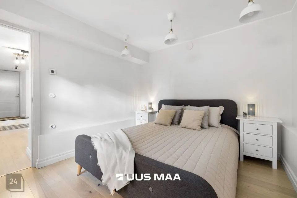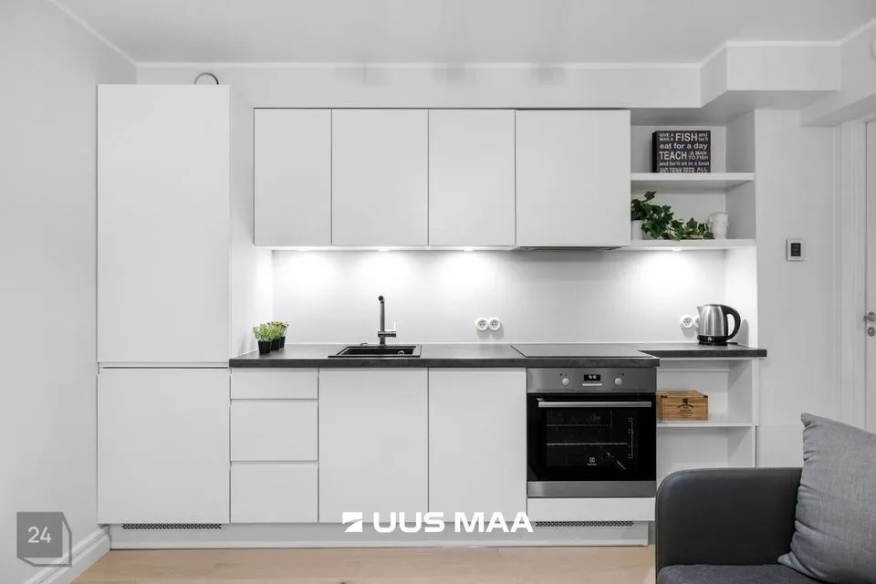 Korterisse sisse astudes ootab ees väike esik, kust edasi liikudes ootab ees avatud köögiga elutuba, kus on lahtikäiv diivan. Elutoast edasi liikudes ootab ees mõnusa suurusega magamistuba ning elutoa köögipoolsest osa juures on WC-vannituba, kus olemas ka pesumasin. Korter on 2025. aasta suvel läbinud värskendusremondi.