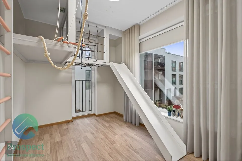 täielikult sisustatud lastetuba mänguala ja suure kapiga;
