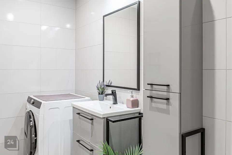 Vannitoas mööbel ja pesumasin;