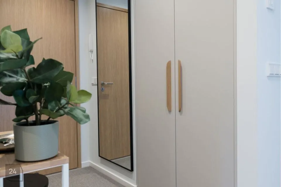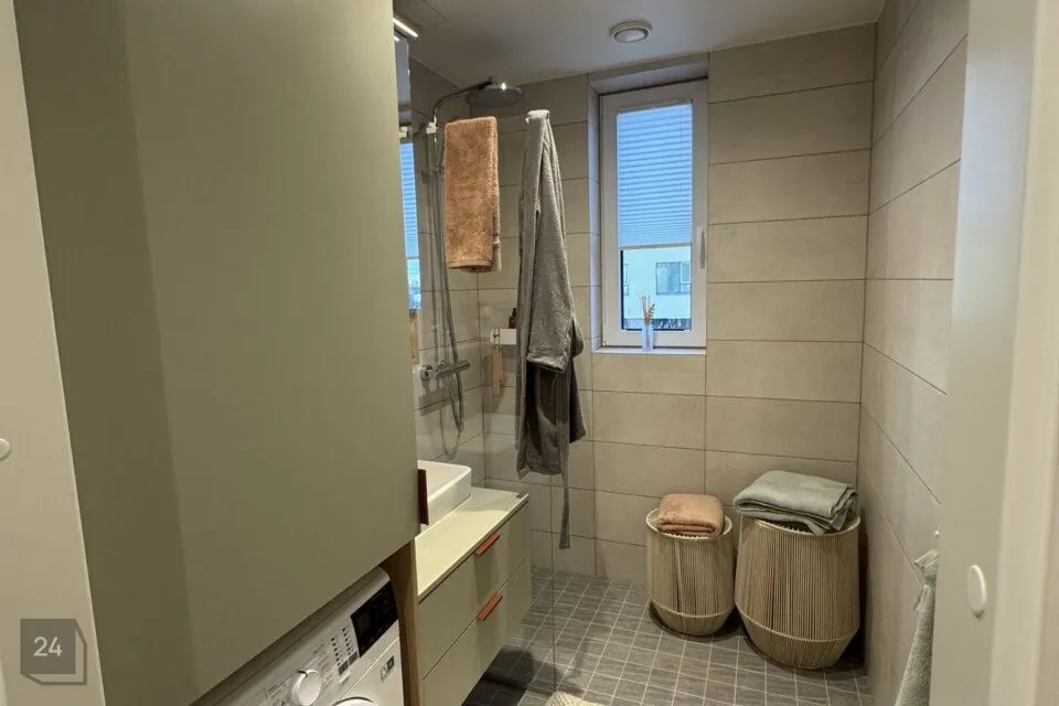 Mugava planeeringuga elutuba koos avatud köögiga loob hubase keskkonna perega koosolemiseks ning suured aknapinnad lisavad avarust ja loomulikku valgust. Mahedates toonides sisustatud magamistoa pärliks on eritellimusel loodud walk-in garderoobi lahendus. Siseviimistluses on kasutatud helgeid ja looduslähedasi toone – heledad seinad ja naturaalses puidutoonis põrandad loovad ajatu ning rahuliku fooni, mida täiendavad kaasaegne kunst ning aktsentseinad. Kaks rõdu avardavad kodu piire ja loovad lisavõimalusi hubaseks olemiseks.