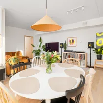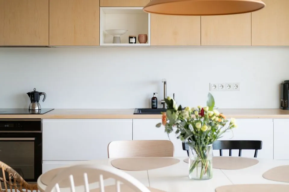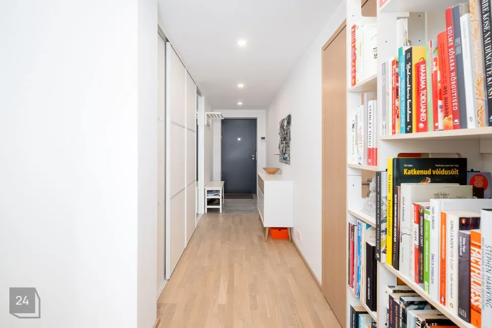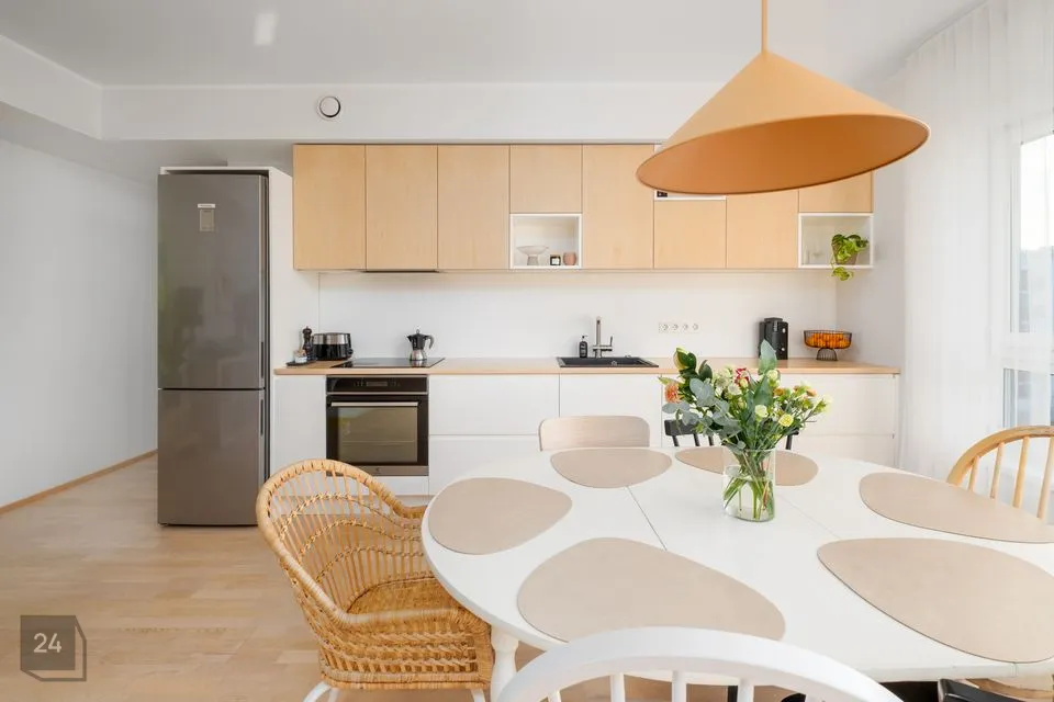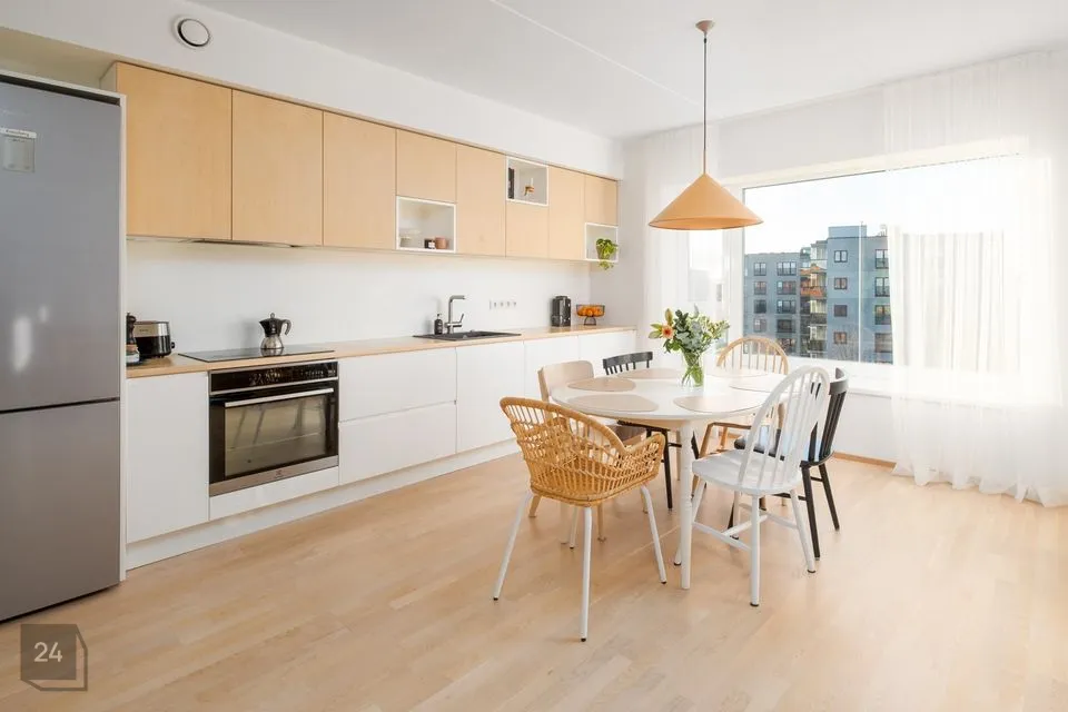 Korter on hästi läbimõeldud planeeringuga. Kodu südameks ja suurimaks väärtuseks on avar ja valgusküllane elutuba avatud köögiga, kus on suurepärane perega aega veeta ja sõpru võõrustada. Eritellimusel valminud stiilne köögimööbel on praktiline ja ruumikas, kuhu mahub kõik kokkamiseks vajalik. Suured aknad toovad korterisse palju loomulikku valgust. Aknad avanevad maja rohelisele tagahoovile, kus suveõhtutel näeb kauneid päikeseloojanguid mere kohal. Elutoast ja magamistoast pääseb 8,2 m² suurusele rõdule. Klaasitud lahendus kaitseb tuule ja sademete eest ning lubab rõdul aega veeta varakevadest hilissügiseni. Klaasmooduleid saab soovi korral täielikult avada.