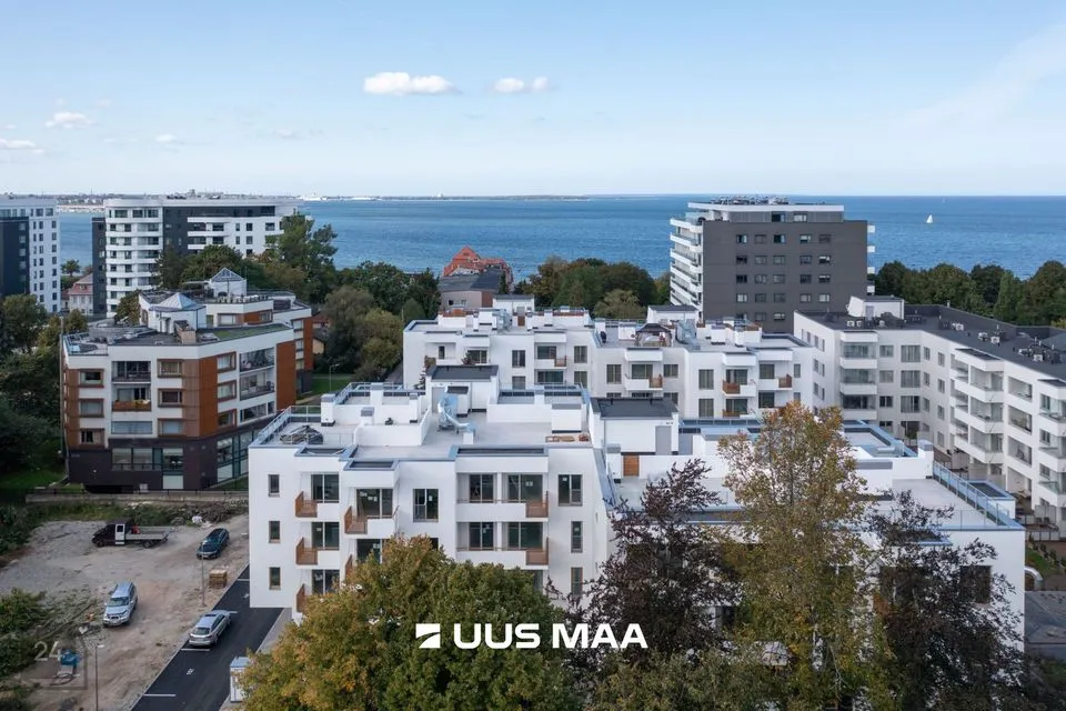 See 4-korruselise maja kõrgeima korruse korter on tõeliselt avar ja valgusküllane. Maja merepoolsel küljel on suur avatud köögiga elutuba, mille 7 m² rõdul saab nautida vaadet Tallinna lahele. Kaks väiksemat magamistuba jäävad maja küljele ning kõige suurem, walk-in garderoobiga magamistuba jääb hoovipoolsele küljele. Korteris on olemas vann, saun, eraldi duširuum ning kaks tualetti (neist üks koos duširuumiga). Kirsiks tordil on suur 60 m² katuseterrass, kuhu pääseb keerdtrepist.