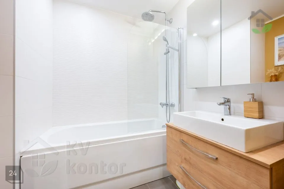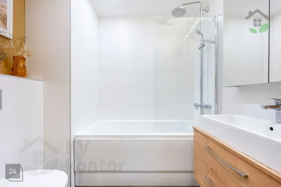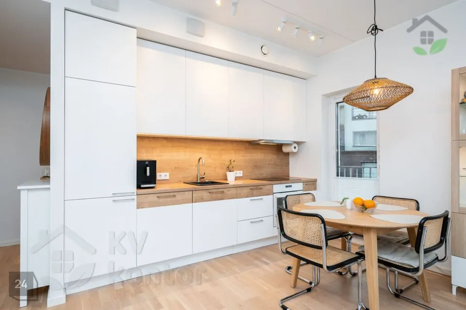 Korter paikneb 4-korruselise maja kõrgel esimesel korrusel, merepoolsel küljel, tagades rohkelt valgust ja privaatsust. Planeering on äärmiselt läbimõeldud ning iga ruutmeeter on kasutatud koduse mugavuse loomiseks.