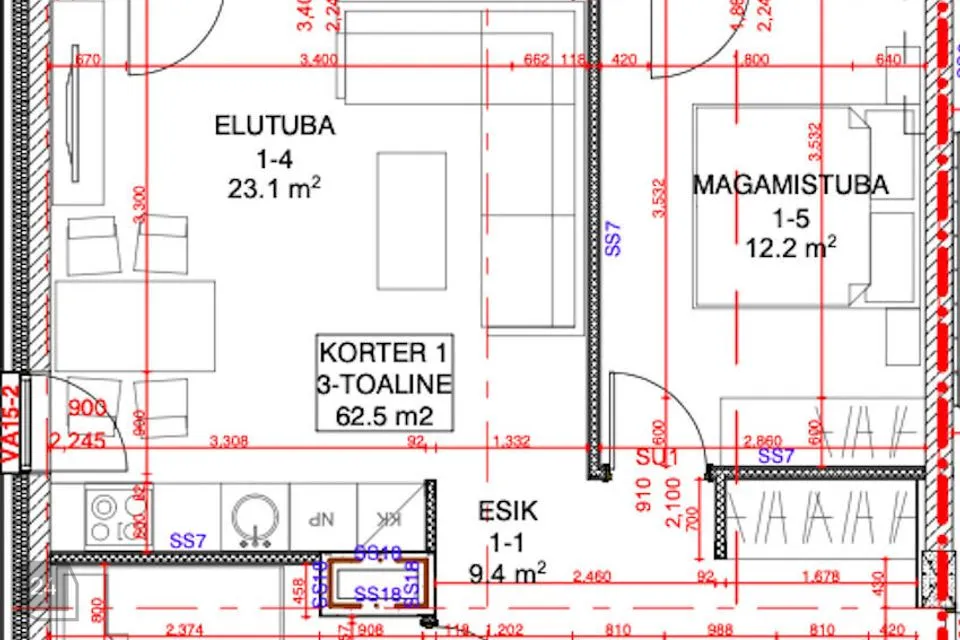 Eluruumi pinda on kokku 62, 5m2 ning sellele lisandub rõdu. Kodu südameks on avatud köögiga elutuba – ruum, kuhu on lihtne koguneda nii pere- kui sõpradega. Siin on ruumi nii õhtusöökideks, mänguõhtuteks kui vaikseteks hetkedeks iseendaga.