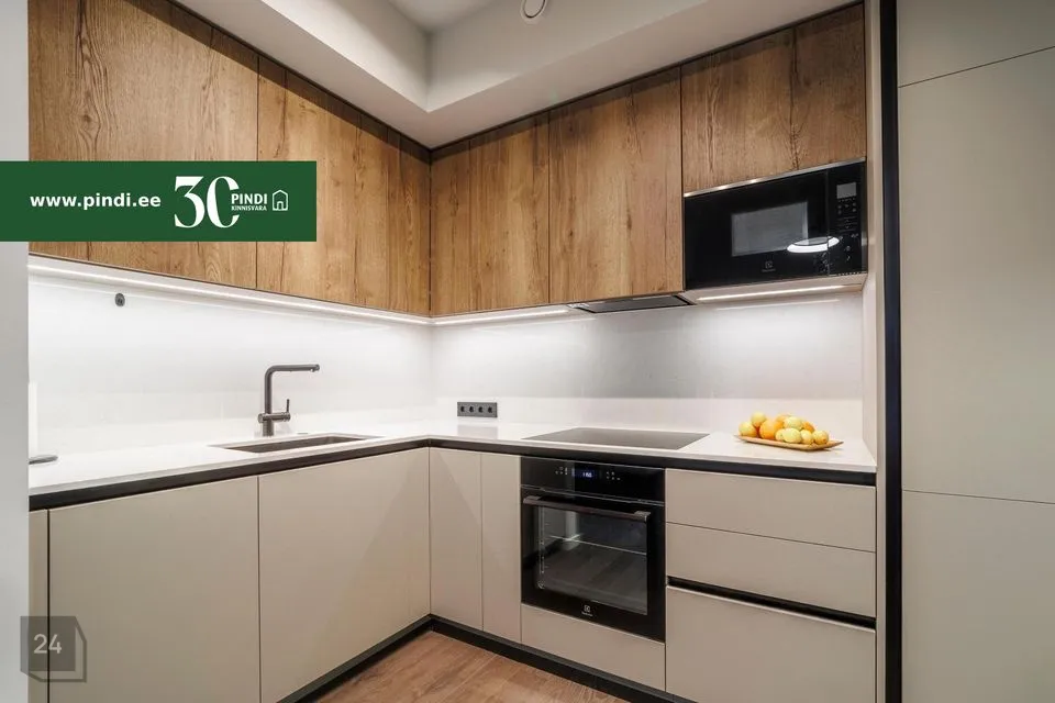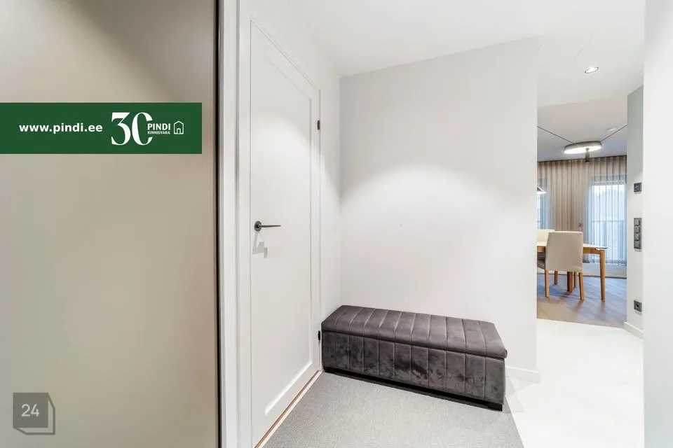Müügihinnas sisalduvad korteri integreeritud kapid köögis, esikus, vannitoas ja magamistoas, valgustid ja aknakatted / kardinad.