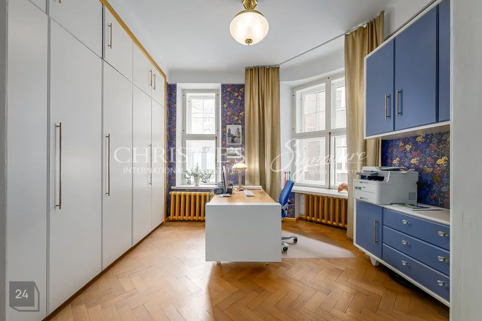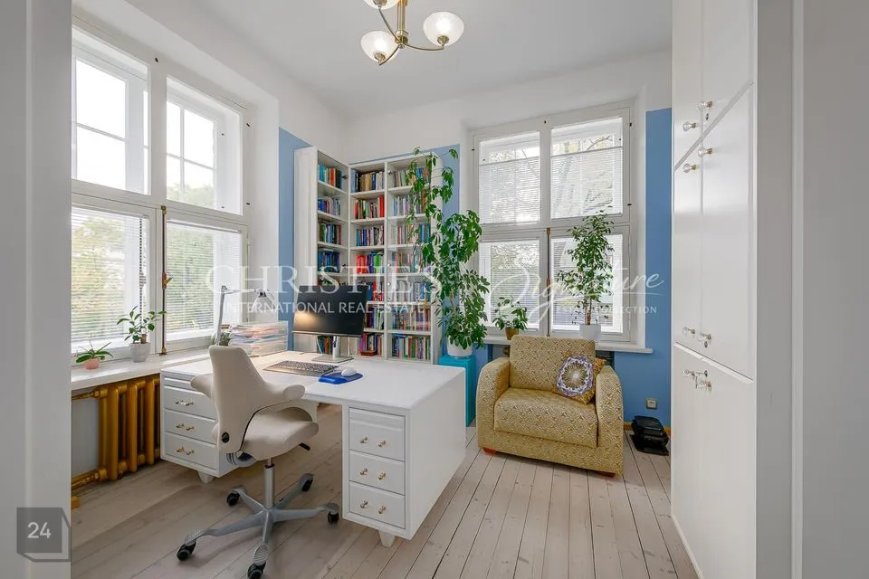 Korter on 160 m², koosseisu kuulub suur avar elutuba, kamina tuba, 2 kontorituba mis mõlemad saab kergesti ümber kujundada magamistubadeks ja peamagamistuba ja väike kontori ruum/magamistuba (endine teenijate tuba) Erladi väga hea lahendusega köök, vannituba koos saunaga.